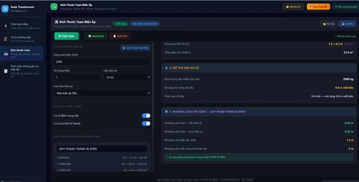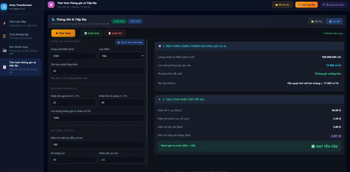 Tính toán kích thước, tiếp địa và thông gió : Khóa học hướng dẫn xác định kích thước trạm biến áp đảm bảo khoảng cách an toàn vận hành. Đồng thời, học viên sẽ học cách tính toán số lượng cọc tiếp địa cho hệ thống chống sét và lựa chọn quạt thông gió để đảm bảo nhiệt độ vận hành cho thiết bị.