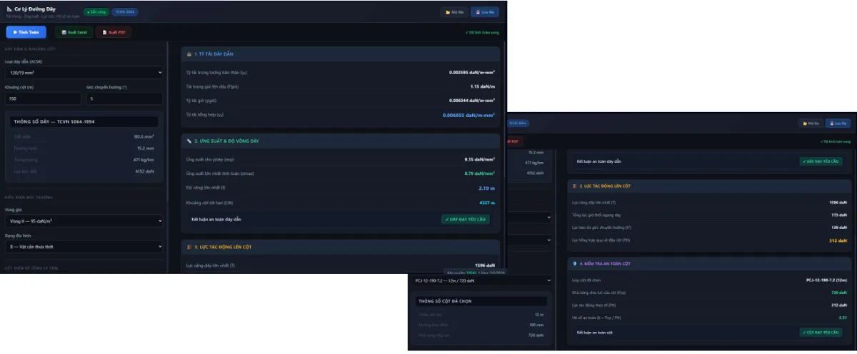 🔧Tính toán cơ lý đường dây : Phần này áp dụng cho thiết kế đường dây không, bao gồm các kiến thức về kiểm tra ứng suất, độ võng của dây dẫn. Ngoài ra, học viên còn được học cách tính toán và kiểm tra lực néo lên cột cũng như tính toán độ bền cho móng cột