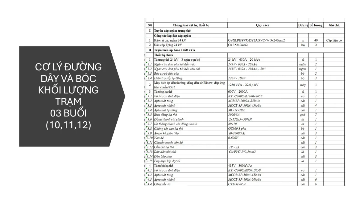 Buổi 10 -11 -12: Cơ lý đường dây và bóc khối lượng trạm biến áp