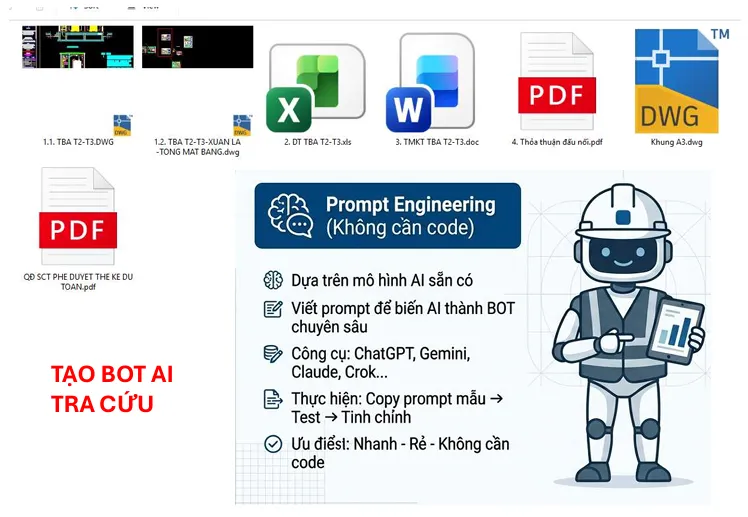 ⚡Tổng quan thiết kế trạm : Học viên được hướng dẫn về cấu tạo hồ sơ thiết kế, trình tự thực hiện, các quy chuẩn, tiêu chuẩn EVN và cách đọc hiểu bản vẽ các loại trạm (trạm treo, trạm xây, trạm kiốt, trạm trụ...). Đặc biệt, khóa học hướng dẫn sử dụng các tập lệnh CAD chuyên dụng và ứng dụng AI (ChatGPT, Gemini...) để tra cứu nhanh các tiêu chuẩn kỹ thuật