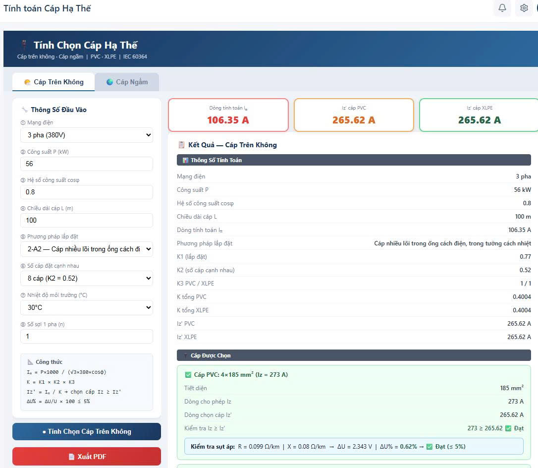o Lựa chọn cáp hạ thế